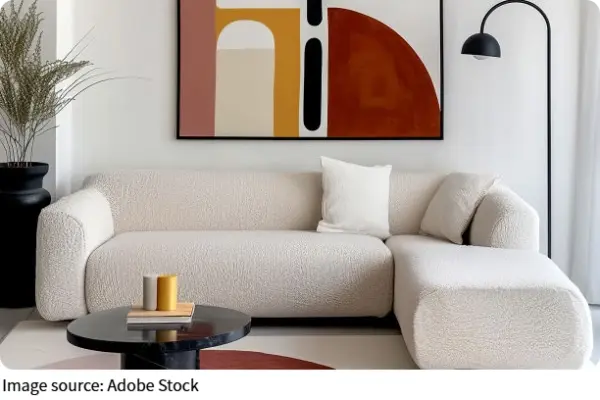 Wall art with simple patterns or abstract shapes fits the style. A handmade ceramic vase or a small sculpture can add personality.