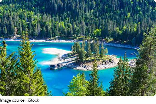 Lake Caumasee, or Lag La Cauma in Romansh, is fed by glacier springs and underground rivers. The shallow waters warm quickly, so swimming is comfortable from April through September. The water level varies seasonally, lowest in April before snow melts, and highest after summer rains. Its clear turquoise color and mountain backdrop make it one of eastern Switzerland’s most beautiful summer destinations.